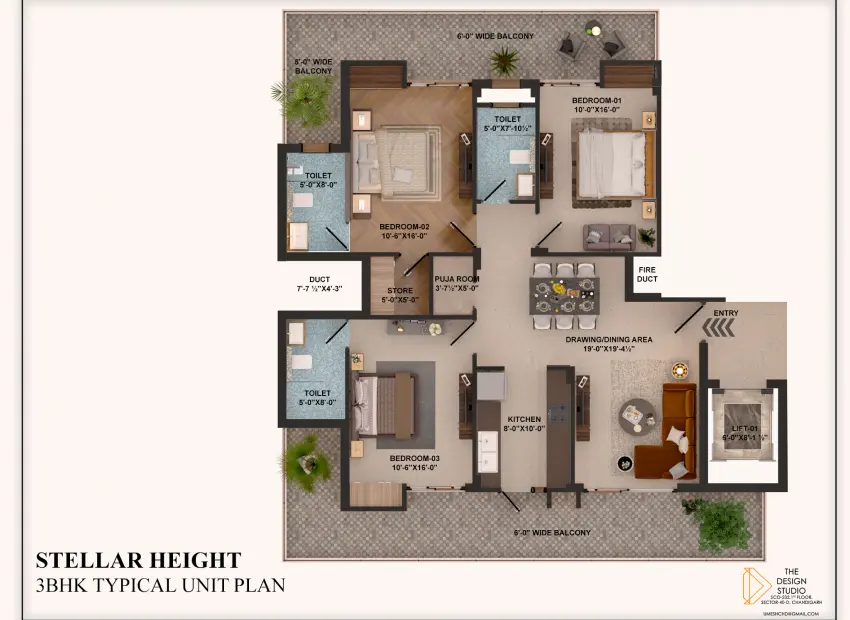 Stellar Heights offers spacious 3 BHK apartments designed with dual-core layouts to ensure optimal ventilation and natural light. Built on a podium-based Park layout.